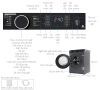 Đồng thời, nắp máy giặt được làm bằng kính chịu lực bền bỉ, sang trọng cùng với nút xoay được mạ gương sáng bóng lẫn phím cảm ứng siêu nhạy trên bảng điều khiển song ngữ Anh - Việt, giúp người dùng thao tác chức năng máy dễ dàng hơn.