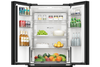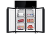 - Cửa tủ lạnh được thiết kế với mặt kính màu đen chủ đạo, mang lại vẻ hiện đại, sang trọng cho không gian bếp. Bề mặt này giúp việc vệ sinh tủ dễ dàng, chống trầy xước và giữ cho tủ lạnh luôn sáng bóng và mới mẻ.