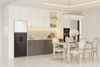 - Tủ lạnh Samsung 2 cửa, ngăn đá trên sở hữu thiết kế Bespoke với phối màu trắng thạch anh/nâu ánh than hiện đại, dễ dàng hài hòa với mọi phong cách thiết kế bếp.